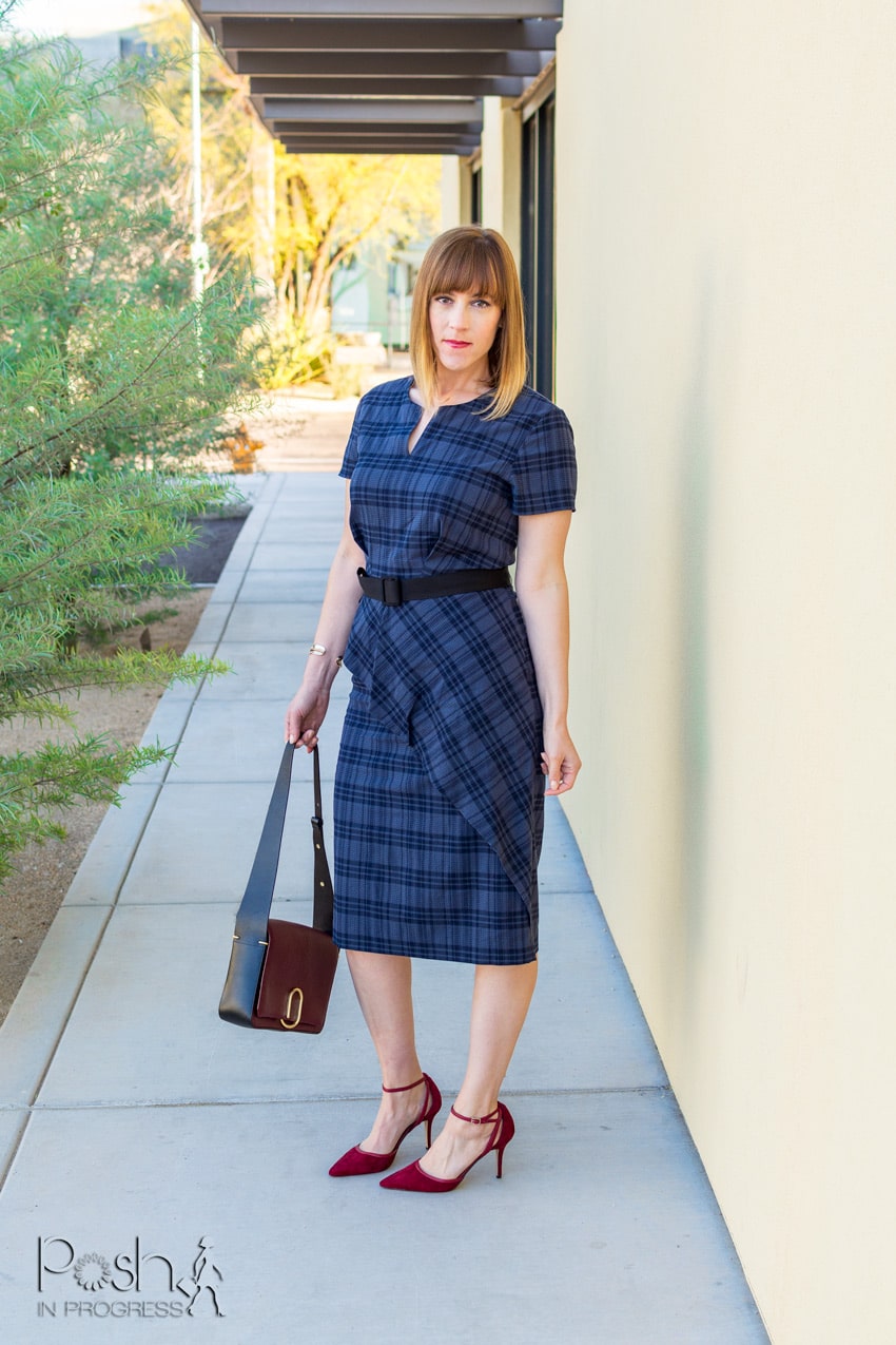 When I first tried on my plaid dress I wasn’t sure about it. It fit really well but I wasn’t sure if plaid was my vibe. However, after wearing the dress, I quickly realized the print is quite subtle. Plus, the fit of the dress is so great that the print fades away. All the special details of the dress – the wide belt, the peplum ruffle – are what really stand out.