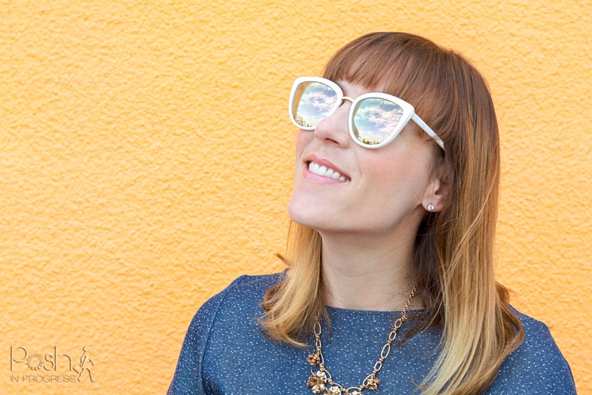 There are three major sunglasses trends for fall that I’m absolutely loving. I’m already a huge fan of the cat-eye shape. I wear it all the time. There are some new trends I tried that I thought I’d hate, but actually loved! For example, I was sure I would hate a round shape on my face. I was pleasantly surprised that it looked OK on me! They still take me back to the 70s and I feel like John Lennon. But, somehow, this shape totally works!