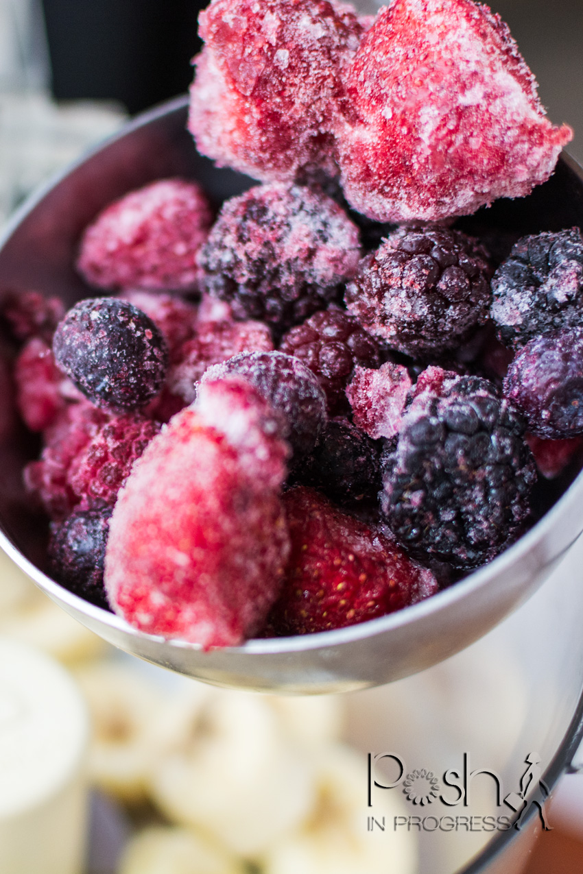 To start creating your smoothie bowl, you need to decide what types of frozen fruits and/or vegetables you want to use. I know people are often surprised by using frozen veggies, but several types of veggies work well in smoothies. You can use butternut squash, zucchini, cauliflower, greens (I often use fresh spinach or mixed greens, frozen works too). I also have tried frozen beets, which is a great way to eat beets that is much less messy!