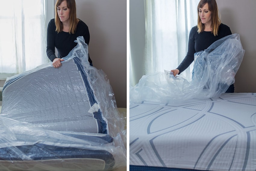 After I cut away the plastic, I watched the foam miraculously expand. Seriously, it was crazy! In less than 10 seconds, we had a full-size queen mattress on our bed. You can tell from the pictures what an easy process it was. Moreover, it was fantastic to have a mattress delivered directly to my house. If you live near a Sam’s Club, you can also pick up the mattress. The box is definitely small enough to fit in most vehicles.