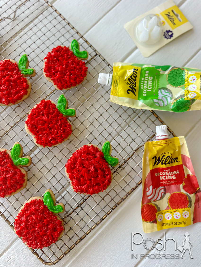 Here’s how I decorated my apple cut out cookies using Wilton’s cookie icing packets: