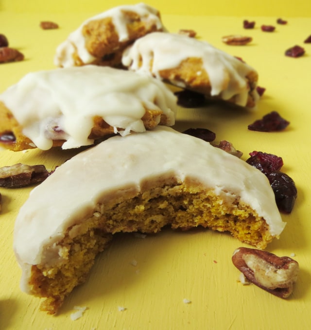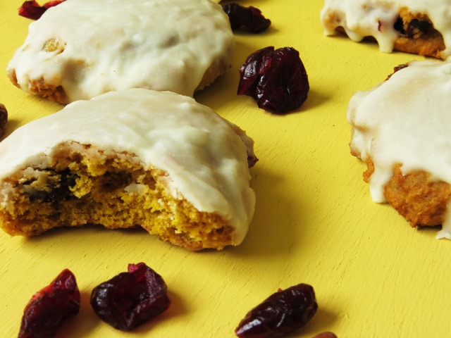 Glazed Pumpkin Cookies with Pecans and Cranberries