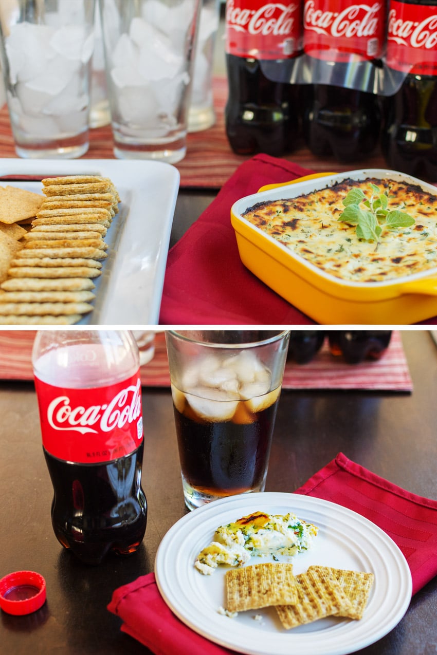 This recipe is perfect for game day because it takes less than 20 minutes to make. You won’t have to miss a minute of the game, and you’ll have a hot appetizer that’s a total crowd-pleaser. Plus, it goes so well with things you should always have on-hand for game day, like crackers and Coca-Cola. I served mine with TRISCUIT crackers and Wheat Thins from my local Kroger store for a great crunch. You could also serve this hot ricotta cheese dip with fresh veggies like carrots and celery.