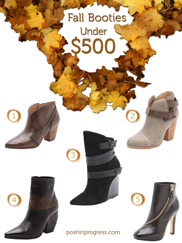 I chose five different booties in three price ranges to showcase some of the variety and styles available in booties this fall.