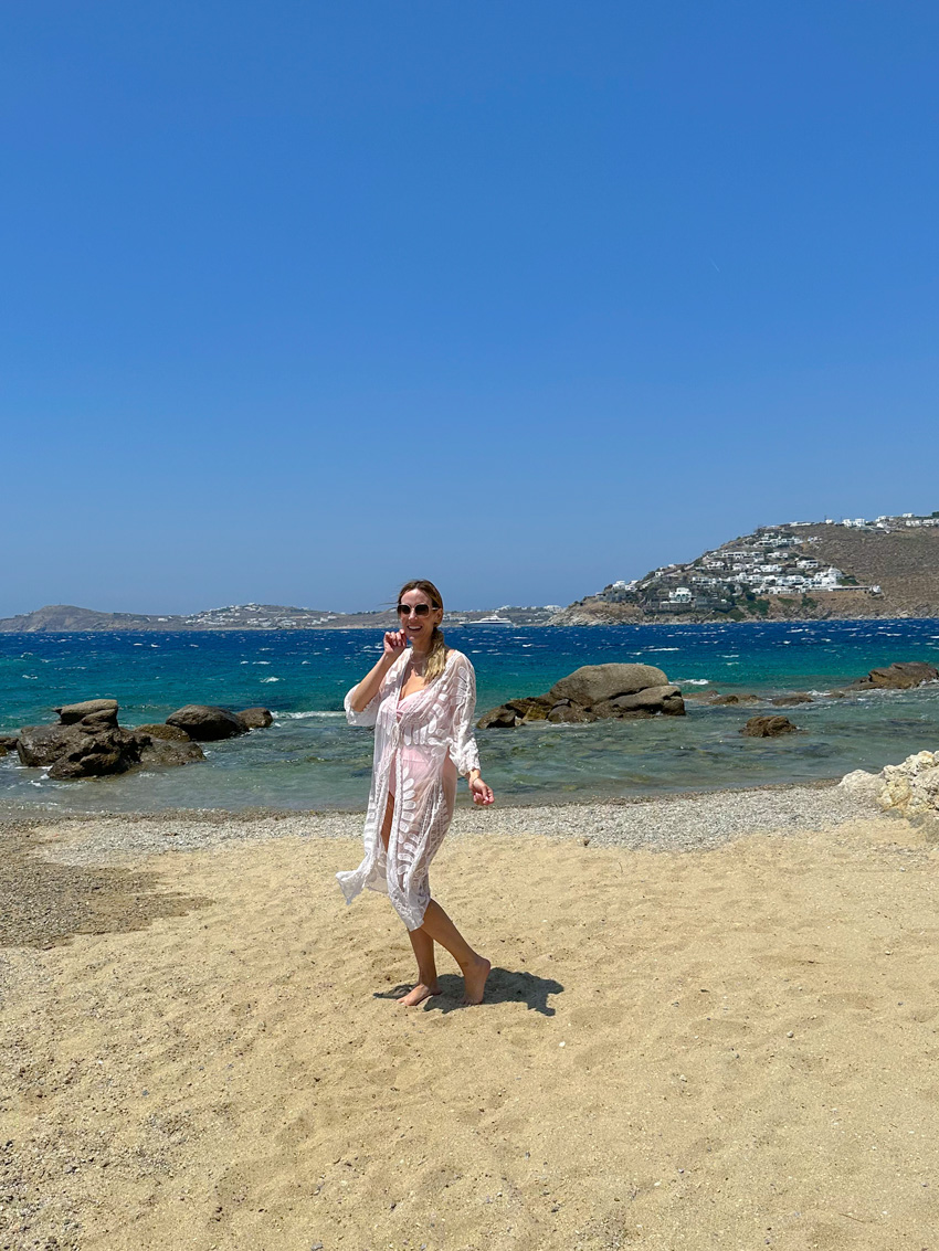 The only real party vibe I got was our day at the Scorpios Beach Club. Beach clubs are definitely a thing to do in Mykonos. We had a great time at Scorpios, but it was very windy, which I found a bit annoying. I honestly didn’t love Mykonos because of how windy it was, so preferred when we were actually in Mykonos town. However, it’s still a really beautiful island. I enjoyed checking out the Windmills, and also our hotel stay was out of this world. I’d go back simply to stay at that hotel.