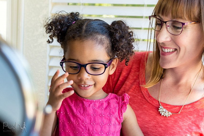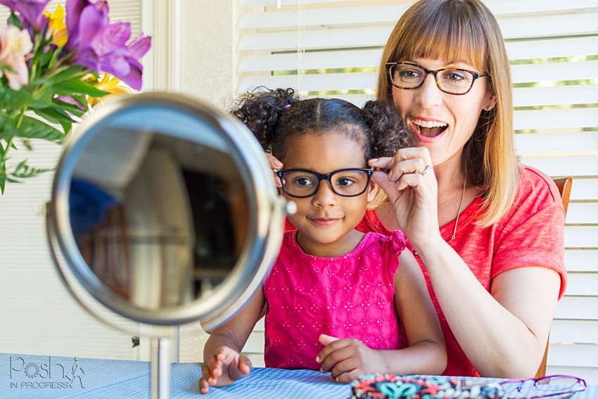 The Chelsea Morgan frames were my favorite because I loved the two-tone. Classic tortoise in the front, and vibrant blue on the sides. I also loved how closely the mommy and daughter frames were. They almost look identical, which was so fun for my daughter and me.
