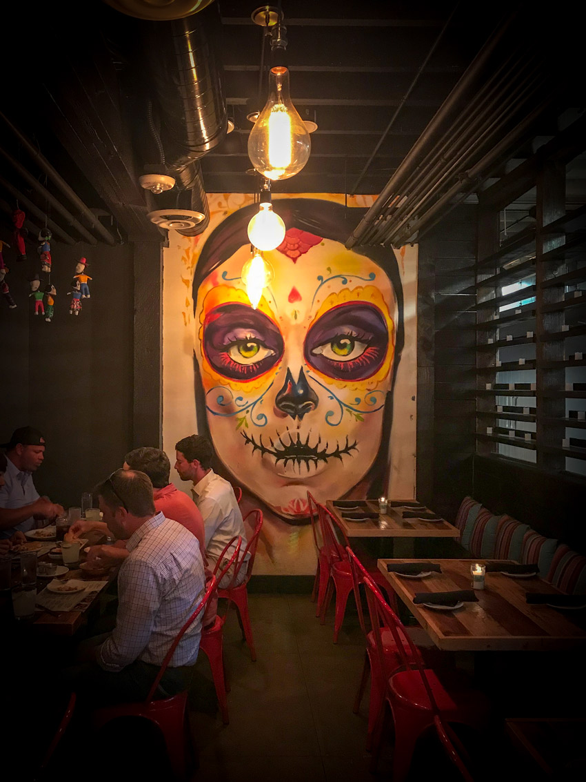 Many of the restaurants have interesting murals and/or framed art hanging on their walls. I was especially drawn to the restaurant that had the giant skulls. If you look closely into the space, you can also see that they had dolls hanging from the ceiling. All these little details make the spaces so unique.