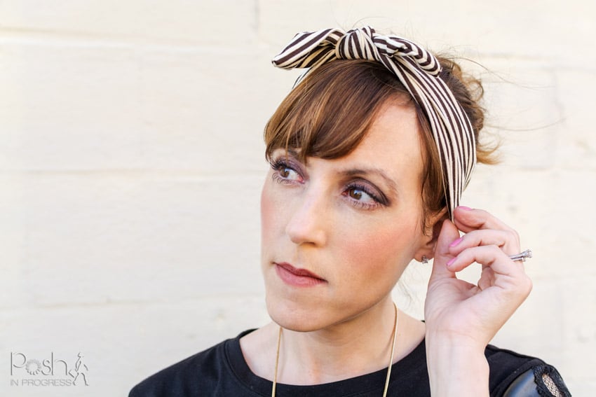 I’ve been so boring lately, I decided it’s time to shake things up, so I bought this striped headscarf and I absolutely love it! Black and white stripes are the best because they are so versatile and work with nearly everything. I personally love how headscarves look when my hair is pulled up, but it also can look totally cute with your hair down or in a low pony. (If you want to check out my full outfit, click here).