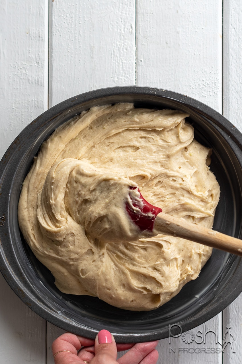 Although it doesn’t take long to make this cake, you do need to set aside about an hour for it to bake. The batter really puffs up, so I found the outsides were browning but the inside was still underdone. I probably pulled mine out just a little bit early, honestly. If you notice your edges getting too brown, you can cover the outer edge of the pan with foil to hood the edges so they don’t continue to brown. I actually love a crusty edge, so I was happy with the final product.