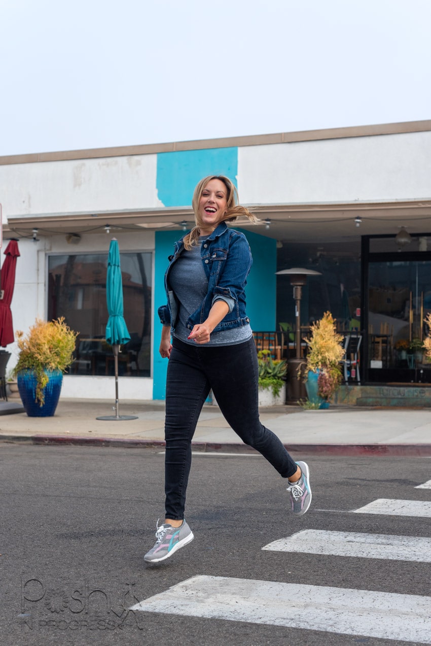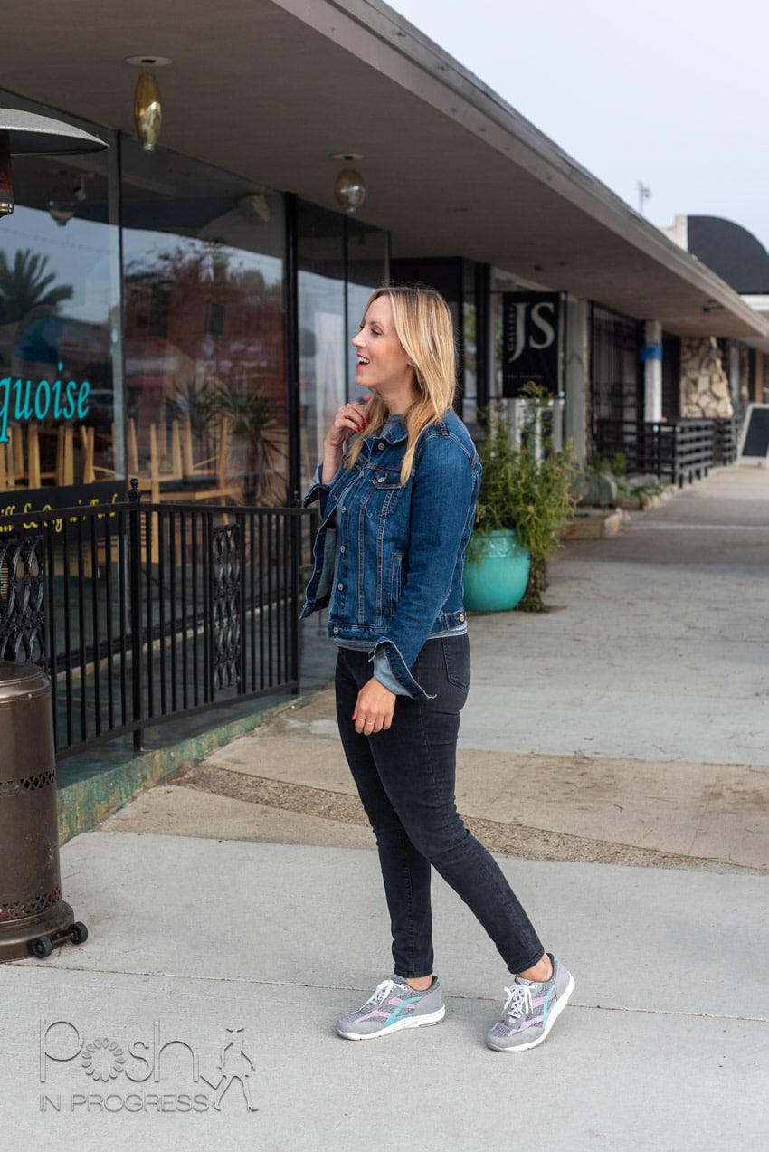 As for jackets, I alternate between denim jackets, leather jackets, and other lighter-weight jackets. In the winter, you might find me in a fleece when it drops below 60 (I live in LA, remember). Most of the time, it’s a leather jacket in the winter and a denim or other light weight jacket in the fall. I own a lot of jackets – probably 30 or more – because I simply love the layers. For me, there is nothing that puts an outfit together better than a jacket. Jackets can completely change a look and for me, they always make an outfit look more put togeher.