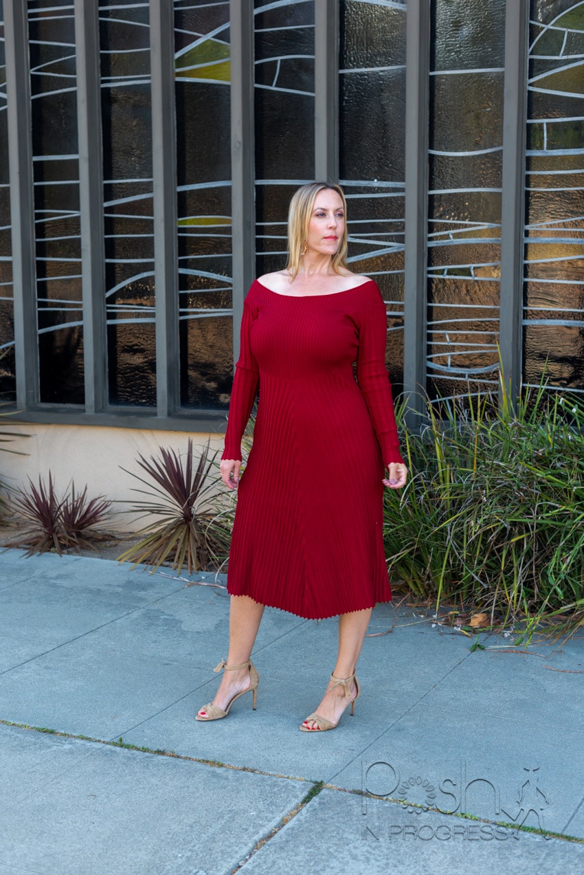 The first thing I noticed about this dress is the color. Red and burgundy look good with my olive skin tone. Also, I love the bright jewel-tone colors for fall and winter.