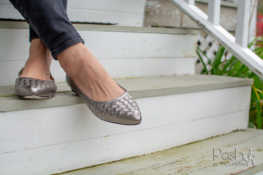 When it comes to the flats I wear, I also look for some interesting visual elements. I’m currently loving these Estee woven Trotters in metallic silver. Metallics are always on trend. Plus, I like the shine they add, while still providing ultimate comfort. Also, Trotters are known for having the finest quality, fit and style. Their shoes are handcrafted using the best leathers from around the world. They are high quality and the leather is very soft. They also come in a variety of colors, sizes and widths to ensure the perfect fit for everyone.
