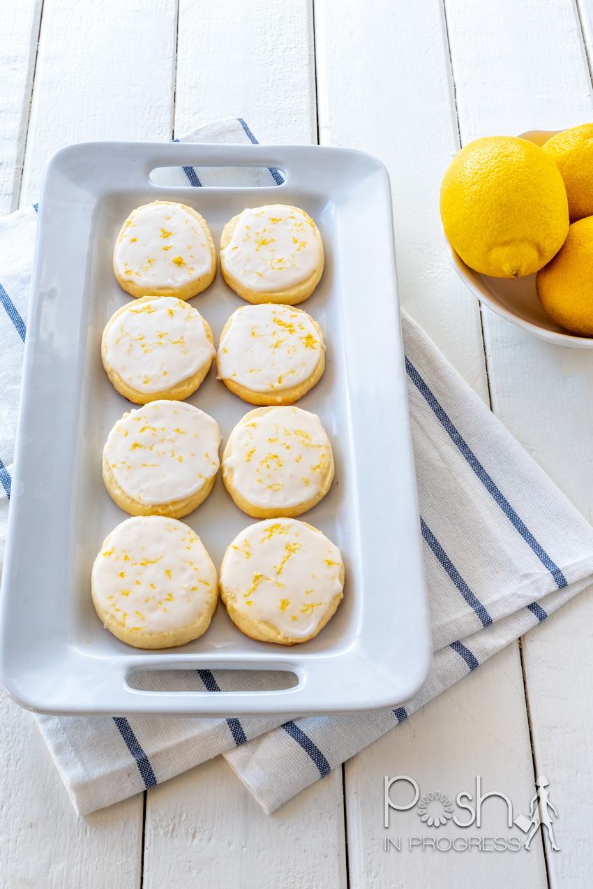 While they cool, make the lemon glaze by mixing the lemon juice and powdered sugar with a whisk until smooth. Top each cookie with a spoonful of glaze. You can top it with lemon zest if you want a tart cookie.