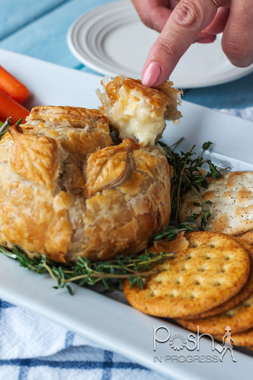 Baking baked brie with garlic is actually super easy to do. This is a perfect warm recipe that is a total crowd-pleaser. If you don’t like garlic, you can do lots of other things. You can just do it with puff pastry and brie. Also, you can add different fruits, herbs or jams to change up the recipe.