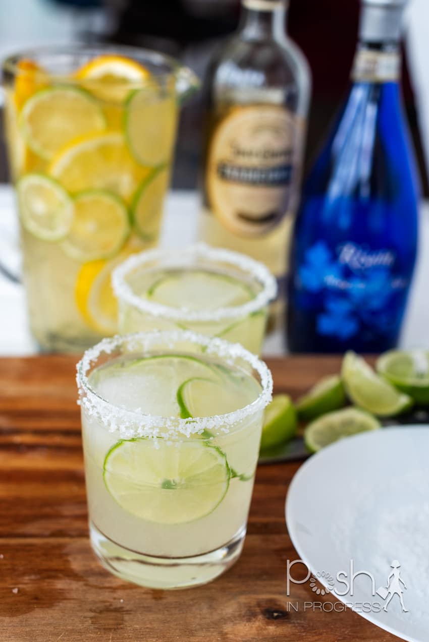 The other day, I received several bottles of Risata Moscato wine. It is a sweet white wine that has citrusy notes, so I decided I’d try to create a cocktail with it. I wanted to create a sangria margarita recipe because a classic margarita is one of my favorite drinks, and Cinco De Mayo is right around the corner!