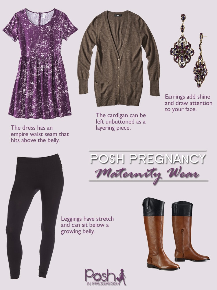 Cardigans. I also own a lot of cardigans, which are the perfect layering piece to wear over basic tops with jeans or slacks. If you don’t already own cardigans, you can find cute ones for very reasonable prices at nearly any retailer. Even if you can’t button the cardigan while you are pregnant, no one will be the wiser, as cardigans look great unbuttoned. Or you can opt for an open front cardigan that doesn’t have buttons. If you are able to find sweaters in your pre-pregnancy size and simply not button them while pregnant, you will be able to use them even after your pregnancy. Cardigans that are long enough to cover your bottom also look great paired with leggings.