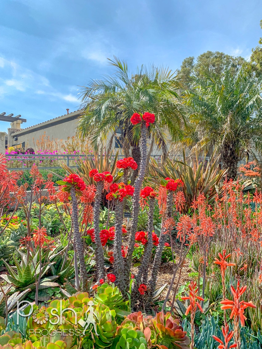 I’m so glad we visited the South Coast Botanic Garden in April. It was the absolute perfect time to visit because so many of the trees and flowers were in bloom. It was at the tail end of the cherry blossom blooms and I loved all the gorgeous colors.