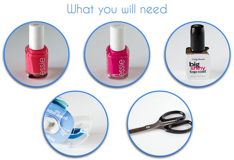 2 Colors of Nail Polish (I used Essie’s Cute as a Button & Watermelon)