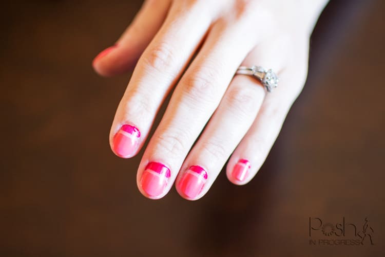 Since spring is officially here in Phoenix, I thought it would be fun to try the negative space manicure trend using some vibrant spring colors. If you aren’t sure about bright colors, or using two complimentary colors like I did, you can do something more subtle. You could use more neutral colors, or just one color, like Webb did.