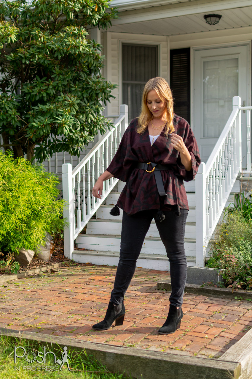 This is the first time I’ve really looked seriously at ponchos for women because I received one in my Box of Style. I love the burgundy color and the black tassels on my poncho. I think it pairs so well with skinny black jeans and booties. If you’d like to get in on a Box of Style, you can save $25 with code poshinprogress25!