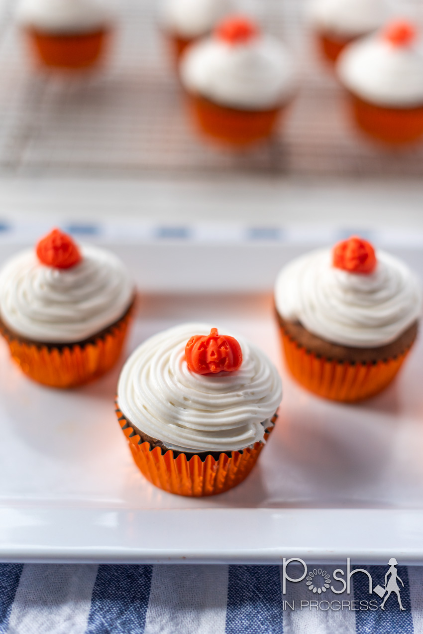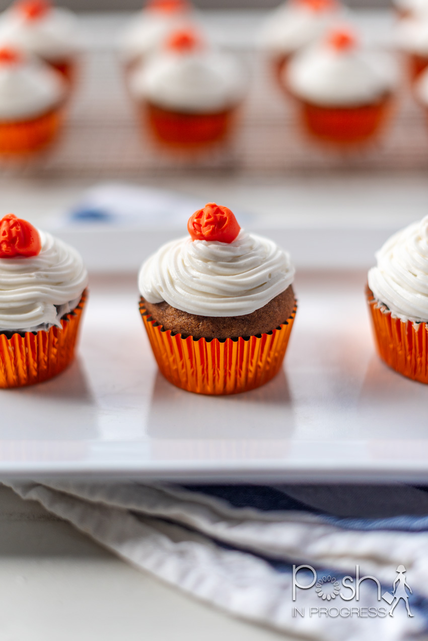 - The buttercream frosting and candy melt pumpkins make them festive and fun.