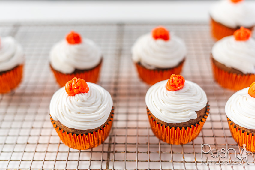 - Bake the pumpkin spice cupcakes and let them cool completely.