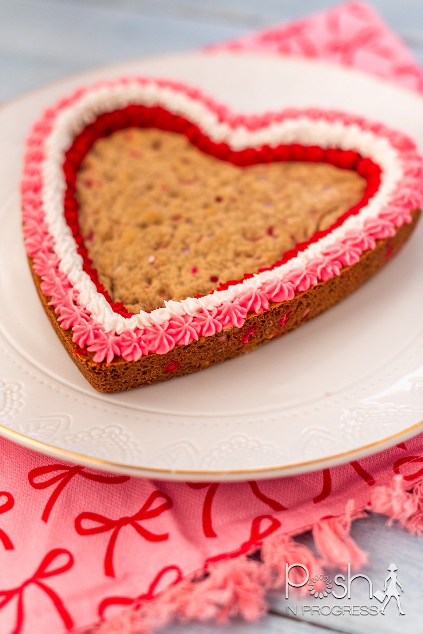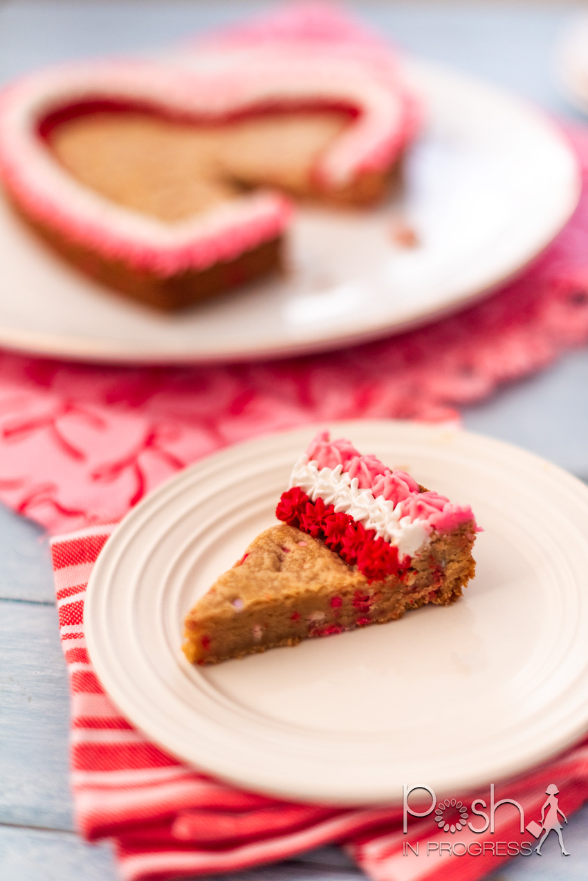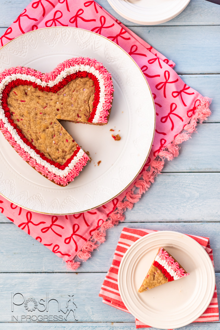It is the same base recipe I use for heart shaped cookie cakes, funfetti cookie cakes, and classic chocolate chip versions on Posh in Progress.