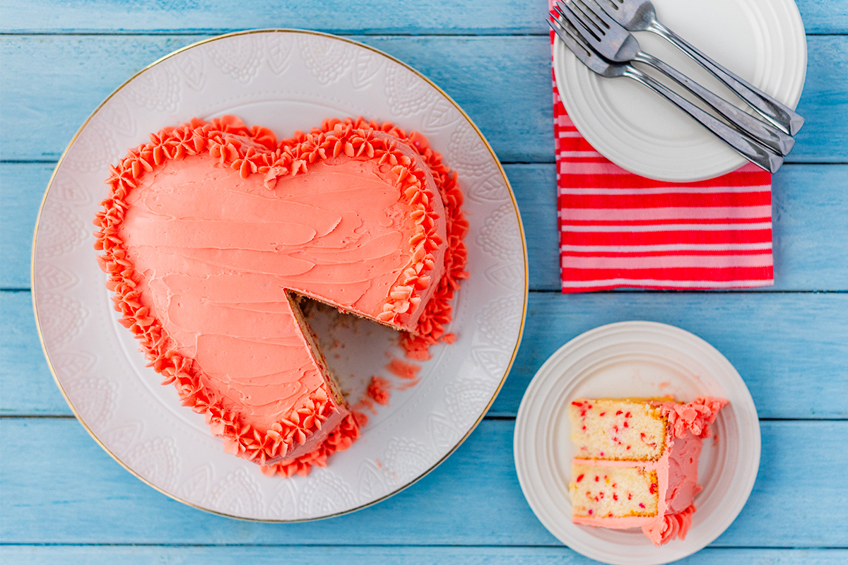 This heart cake recipe uses my funfetti cake recipe I actually made for my daughter’s first birthday way back when. But the recipe holds! It’s a great one, with buttercream frosting. I just swapped out Valentine’s sprinkles from Wilton. It is joyful, colorful, and easy to work with. Whether you need a cake for Valentine’s Day or a family celebration, this recipe delivers.