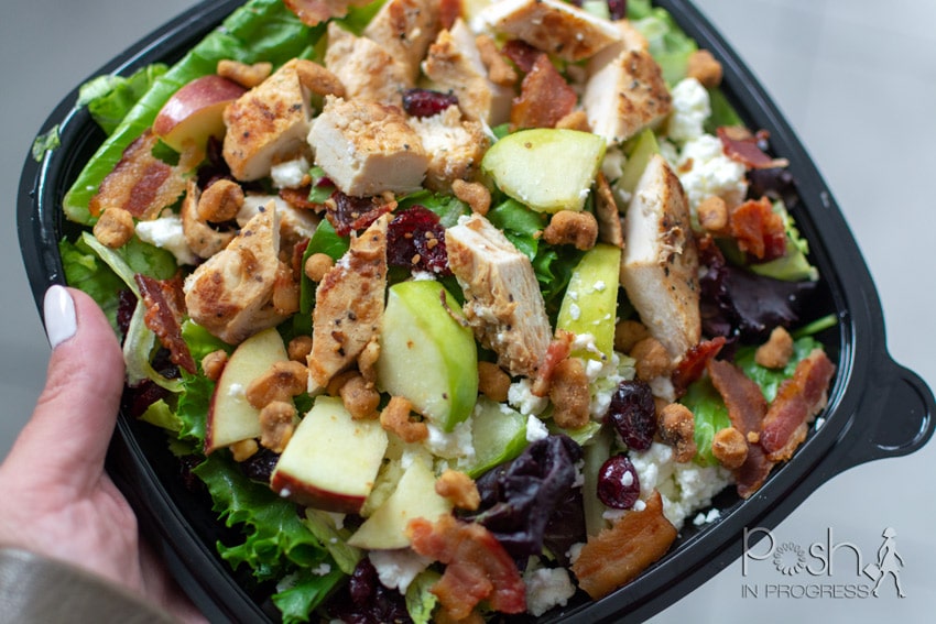 That’s why I love heading to Wendy’s because they have healthy options that are quick and tasty too. Wendy’s makes it easy to eat well with their new Harvest Chicken Salad. The Harvest Chicken Salad is made with flavors to help kick start fall-mode. Brown sugar walnuts and a drizzle of savory Marzetti® Simply Dressed® Apple Cider Vinaigrette will have you feeling like its fall, no matter where you are. The salad is topped with freshly grilled chicken, Applewood smoked bacon, feta cheese and slices of red and green apples, all paired with Wendy’s crisp signature lettuce blend. A full-size Harvest Chicken Salad contains ½ cup of fruit and 1 ¾ cups of vegetables per My Plate guidance – that’s over 2 cups of fruits and veggies in one salad.