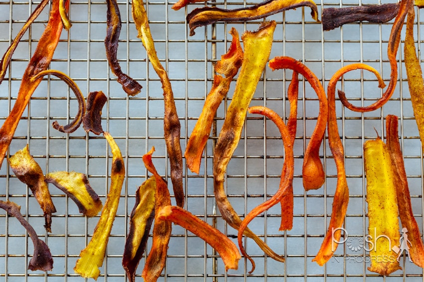 Just as much as the beet chips, my kids chowed these carrot chips down. I will admit they were a little confused by the color. They thought the carrots were burned, but I explained that they were just purple carrots. Once they got over the colors, they enjoyed them thoroughly. This baked carrot chips recipe is another great afterschool snack option. If you’re looking for others, check out this link for some more fun afterschool and healthy snack ideas.