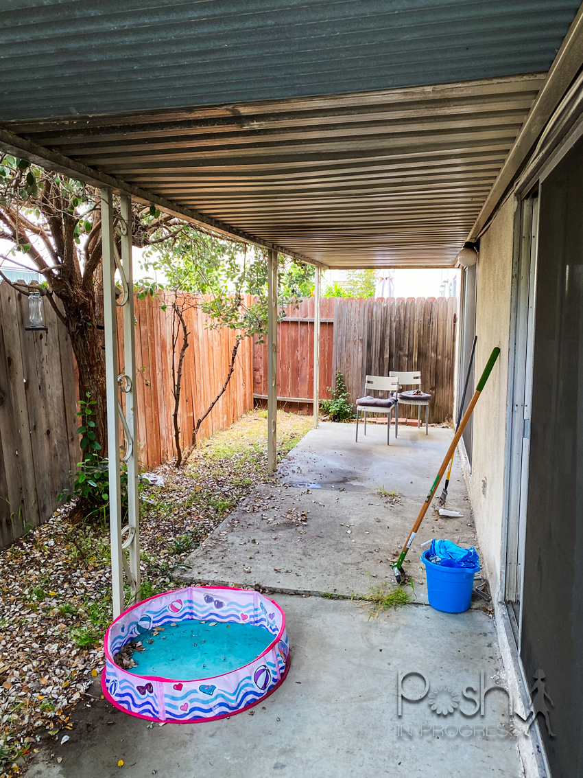 We moved to California in 2018. When we chose our place, one of the things I loved about the house was the two large sliding patio doors that stretch the entire length of my open floor plan living room and dining room. Having these giant doors brings so much light into the space. The side patio always felt like an extension of the home, but it was really ugly. Honestly, I don’t do a lot of home decor. I’ve never really done a DIY patio makeover, so I wasn’t confident I could pull it off. I finally decided to spend some time this summer to recreate the space. I was inspired by an acquaintance who took a small, bland space and made it really special. Seeing her DIY patio makeover gave me the confidence to tackle my own. If you’re thinking about doing a small DIY patio makeover, I hope my experience can inspire you too.