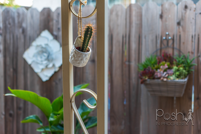 One of my favorite little details of my DIY patio makeover is the tiny little succulents hanging from the patio cover pillars. I found mine at Trader Joe’s, but here are similar ones. I am also in love with the little succulent garden I found at Home Depot. It was pre-planted with all of the different varieties of succulents, and I think it is so beautiful. For the price, I think it was actually cheaper to buy one pre-potted than to create the mini succulent garden myself. Here is a similar option if you want a succulent wall garden.