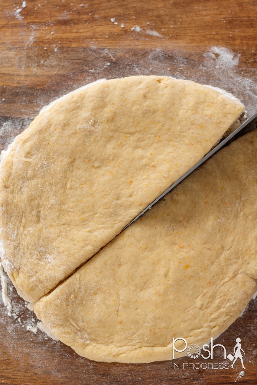 I used two types of oranges for this orange scone recipe. I had some mandarins left that I needed to use, so I zested and juiced those for the dough recipe. As a word of caution, juicing mandarins isn’t that simple. They are pretty small so unless you have a juicer, it’s kinda tough. But, it worked. I just used my hands over a large bowl to catch all the juice. Then, I used some larger navel oranges for the zest topping over the glaze.