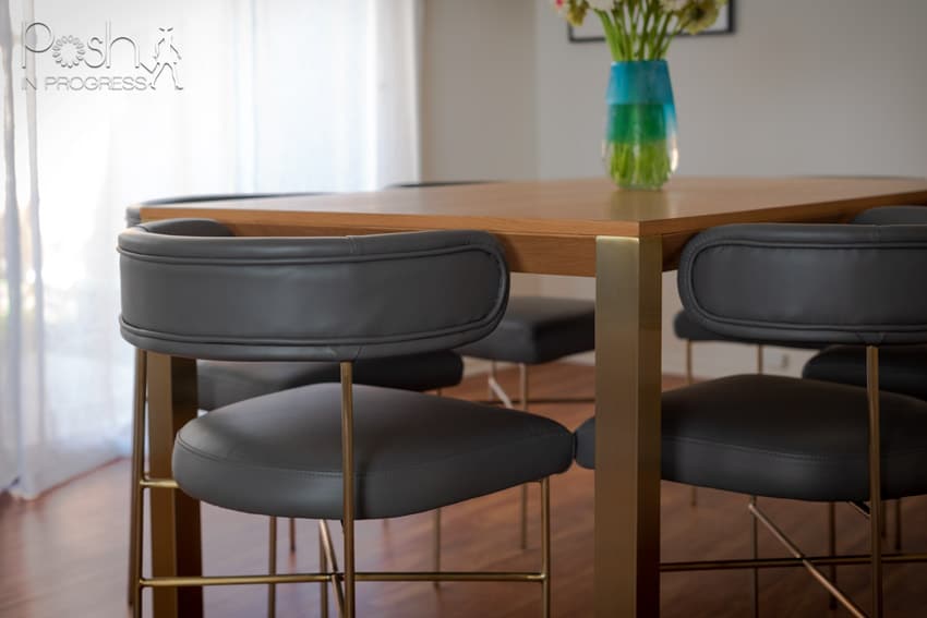 As for the chairs, they offer three different styles. I went back and forth on choosing the chair style. I absolutely love the style I chose (the Audrey), however, I also love the Kit style. Unfortunately, they can’t make the Kit style with leather materials, so that’s why I chose the Audrey. I really wanted leather (rather than cloth) because I though they would wear better. I know leather might seem like a strange choice for dining room, but leather actually cleans up really easily. Leather is also so timeless and holds up really well with kids. I chose to do matching brass legs on the chairs. They also offer wood options.