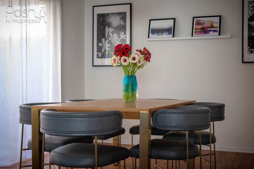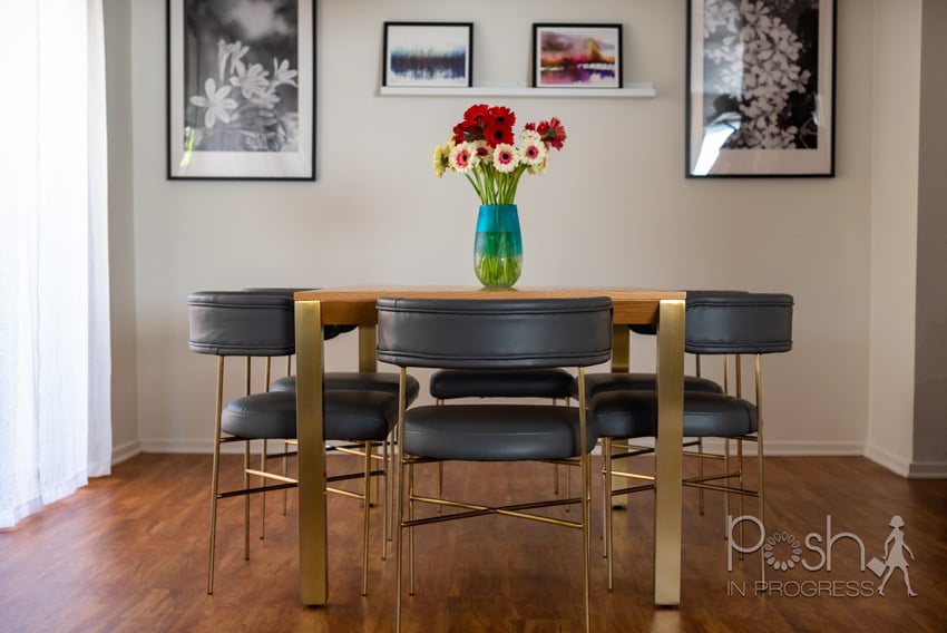 Once I placed my order, it took about 8 weeks for the pieces to arrive. When they got here, their delivery team set everything up for us, which was so nice. I’m so in love with my 6 chair dining room set. It is really chic and stylized, yet totally works for my family. We’ve had many family dinners in our new space, and it’s so nice to finally have a finished space.