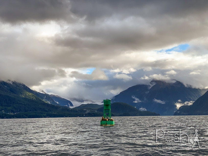 Within the first 24 hours, I’m pretty sure I said, “this is the most beautiful place I’ve ever been” at least 100 times. Although I didn’t really have high hopes we’d see whales, I was pleasantly surprised that we actually saw several! I’ve done whale watching tours in Orange County and San Diego in the past. Although we did see other sea creatures (dolphins, sea lions), we never saw whales. But lucky for my friend and me, during our Sitka Alaska whale watching tour, we saw at least half a dozen humpback whales. Gary explained to us how you can see where they are by their blowhole clouds that rise from the water.