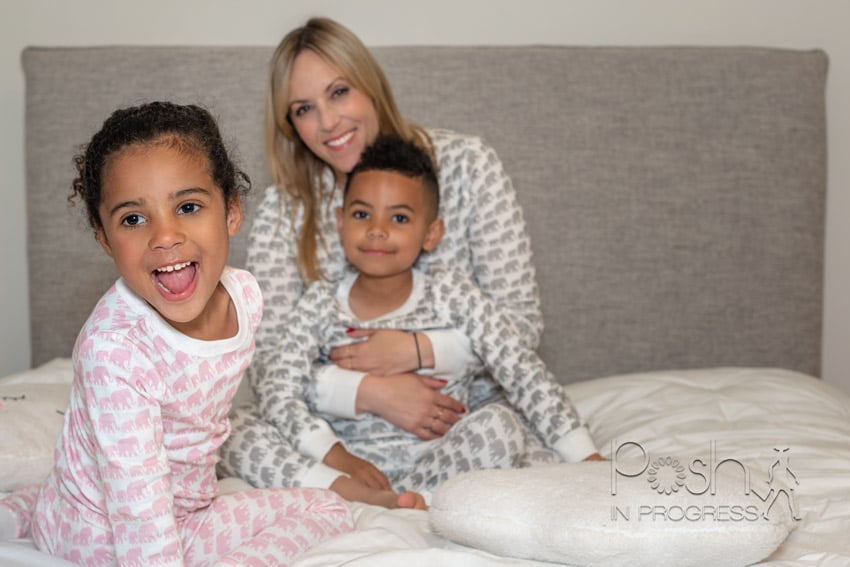 I was actually pleasantly surprised how into it my kids were. I then realized I needed to document that moment. This is the first time that I’ve ever matched with my son. I did a couple matching shoots with my daughter in the past (here and here), but never with my baby boy. Although he did ask why my pjs weren’t pink like his sister’s, he was still very excited we matched.