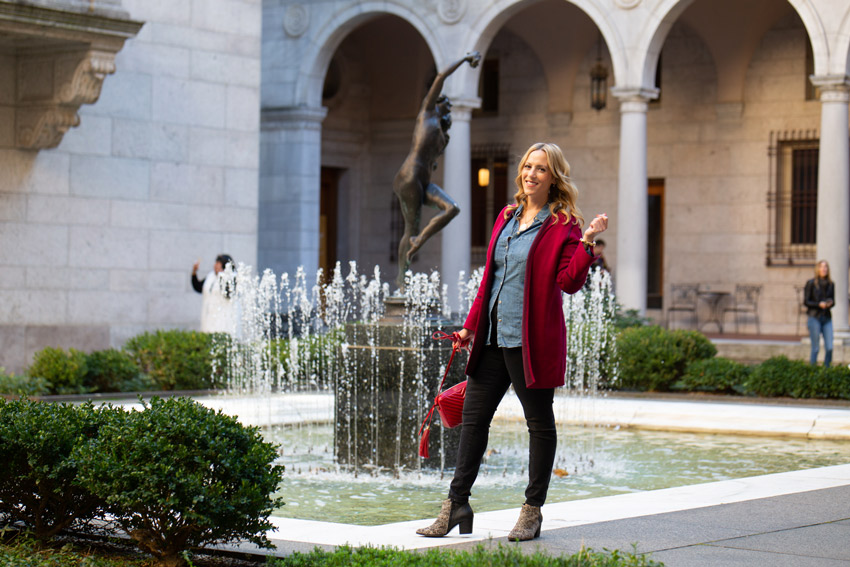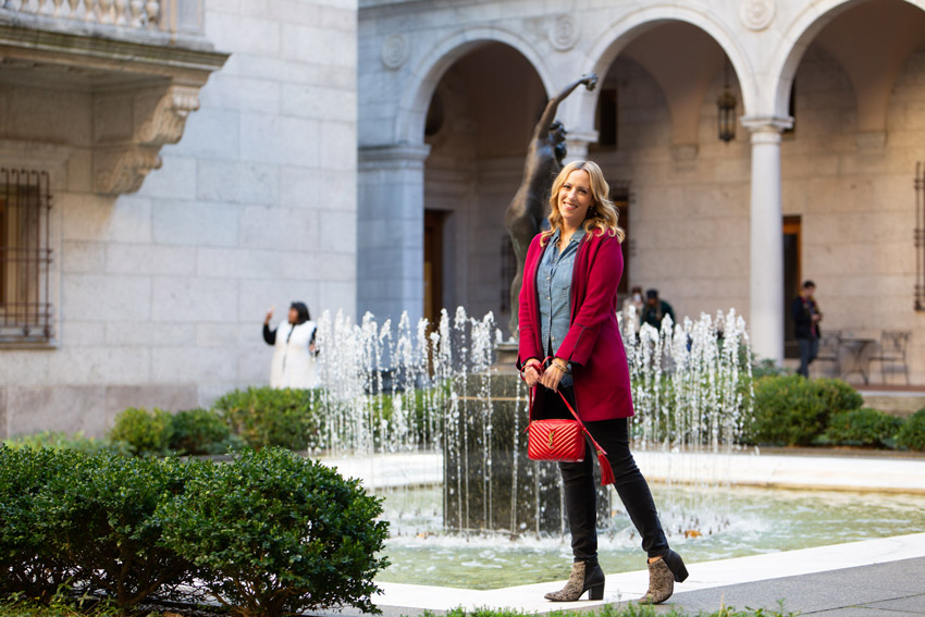 I’m also so happy to see so many different colors and patters in long cardigans this fall. There are ones with patterns, stripes, plaids, you name it. The one I just got is a solid red, but it does have another tone of red in the piping, which adds some visual interest up close.